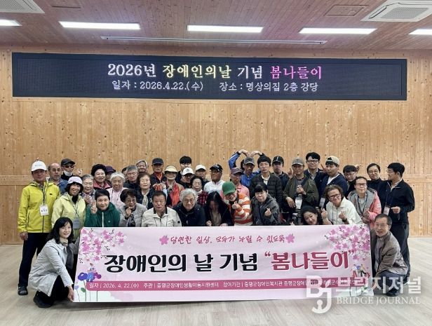 브릿지저널 김경미 기자 | 충북 증평군은 장애인 주간을 맞아 22일 좌구산 일원에서 지역 장애인들의 정서적 힐링과 소통을 위한 ‘좌구산 봄나들이’를 진행했다고 밝혔다.