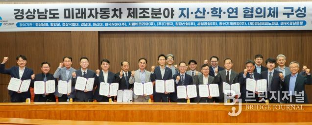 브릿지저널 김경미 기자 | 경상국립대학교는 4월 20일 경남대학교 한마미래관에서 경상남도, 함안군, 지역 대학, 자동차 부품기업, 지역혁신기관, 금융기관과 함께 ‘경상남도 미래자동차 제조분야 지·산·학·연 협의체 구축을 위한 업무협약’을 체결하고, 지역 전략산업 육성과 미래차 인재 양성을 위한 협력체계를 본격 가동했다.