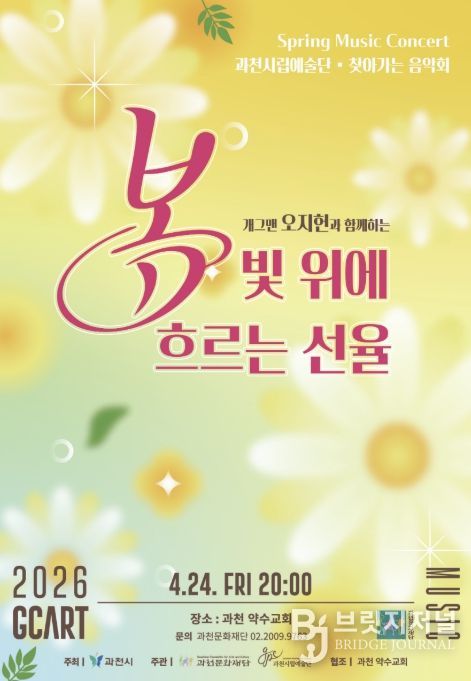 브릿지저널 김경미 기자 | 과천시는 오는 24일 오후 8시, 과천 약수교회에서 시민들을 위한 특별한 문화 공연 ‘봄빛 위에 흐르는 선율’을 개최한다.