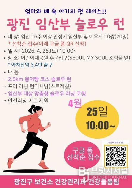 구 관계자는 “임산부 슬로우 러닝은 부부가 배 속 아기와 처음으로 호흡을 맞추며 함께 걸어가는 뜻깊은 시작”이라며, “앞으로도 현장의 목소리를 반영해 임산부의 신체와 정서 건강을 함께 살피고, 아이 키우기 좋은 환경을 만들어 나가겠다”고 말했다.
