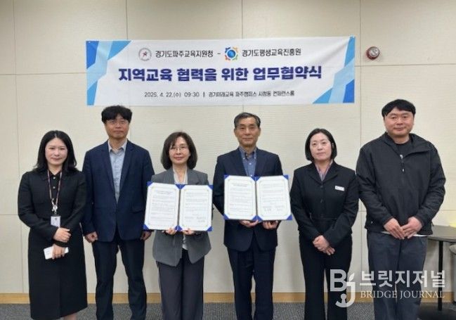브릿지저널 김경미 기자 | 경기도파주교육지원청은 22일, 경기도평생교육진흥원과 파주 지역 미래인재 양성을 위한 교육 협력 체계 구축 및 상호 자원 공유를 골자로 하는 업무협약(MOU)을 체결했다고 밝혔다.