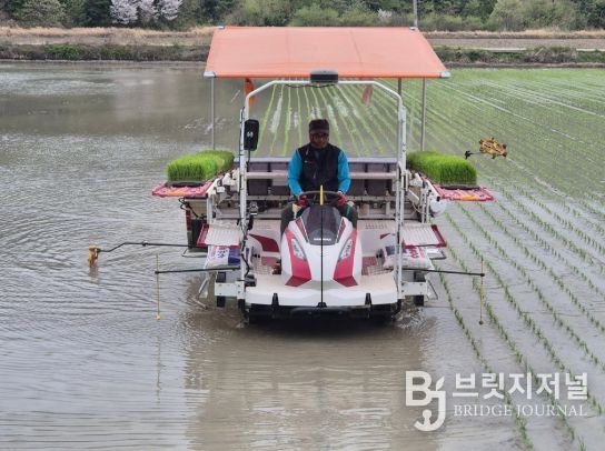 브릿지저널 김경미 기자 | 신안군은 지역 특성에 맞는 조생종 벼 품종 선발과 최적 이앙시기 확립을 위해 지난 20일 자은면 2ha 규모 실증포장에서 첫 모내기 작업을 실시했다.