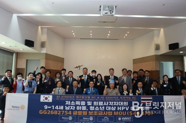 브릿지저널 김진석 기자 | 대구 수성구는 국제로타리 3700지구(대구달구벌로타리클럽), 여성메디파크병원과 지난 21일 저소득층 및 의료사각지대에 있는 남자 아동·청소년을 대상으로 ‘HPV(사람유두종바이러스) 예방접종 지원을 위한 업무협약’을 체결했다.