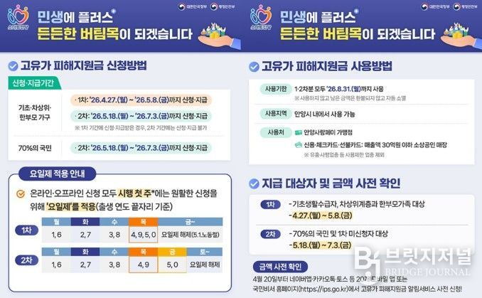 브릿지저널 김경미 기자 | 안양시는 국제유가 급등에 따른 시민 생활 부담 완화를 위한 ‘고유가 피해지원금’ 신청을 이달 27일부터 받는다고 22일 밝혔다.