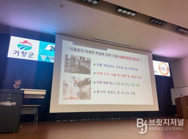 브릿지저널 김경미 기자 | 거창군은 지난 20일부터 21일까지 이틀간 농업기술센터 미래농업복합교육관에서 일반음식점 영업주를 대상으로 ‘2026년 일반음식점 기존영업주 위생교육’을 실시했다.