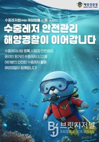 브릿지저널 김경미 기자 | 완도해양경찰서는 오는 23일부터 수중레저 안전관리 업무가 해양경찰청으로 이관됨에 따라, 수중레저 활동 안전사고 예방을 위한 안전관리를 본격 추진한다.