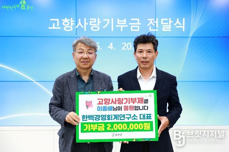 브릿지저널 정보영 기자 | 한백경영회계연구소 이종배 대표가 지난 4월 20일 울진군에 고향사랑기부금 200만 원을 전달했다.