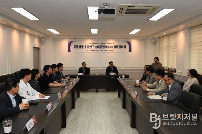 브릿지저널 김경미 기자 | 충청북도동물위생시험소와 충북대학교 수의과대학은 22일 충북대학교에서 동물질병 공동연구 및 대응을 위한 업무협약(MOU)을 체결하고 가축전염병 대응 능력을 고도화하겠다고 밝혔다.