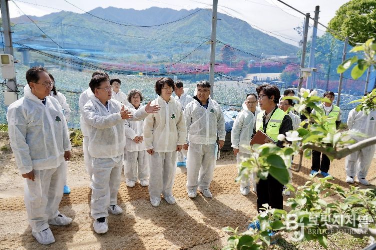 브릿지저널 정보영 기자 | 경상북도농업기술원은 22일 사과 주산지 영주시에서 과수화상병 확산 방지를 위해 중앙·도 합동 개화기 약제 방제 추진 상황을 점검했다.