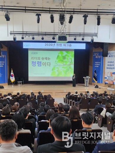 브릿지저널 김경미 기자 | 화성특례시는 22일 시청 대강당에서 고위공직자를 대상으로 ‘2026년 청렴 워크숍’을 개최했다. 이번 워크숍은 조직을 이끄는 고위공직자의 청렴 리더십을 강화하고, 반부패 관련 법령에 대한 이해를 높여 공정하고 투명한 공직문화를 정착시키기 위해 마련됐다.