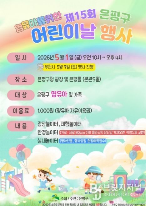 브릿지저널 김경미 기자 | 서울 은평구는 어린이날을 맞아 내달 1일 은평구청 광장과 은평홀에서 ‘제15회 영유아를 위한 어린이날 행사’를 개최한다고 밝혔다.