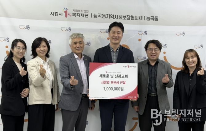 브릿지저널 김경미 기자 | 시흥시 능곡동은 지난 4월 22일 새로운 빛 신광교회로부터 지역사회 취약계층 지원을 위한 후원금 100만 원을 시흥시1%복지재단을 통해 전달받았다.