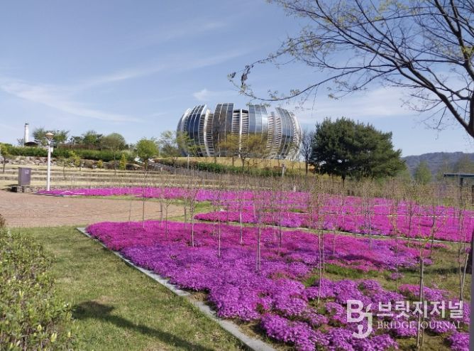브릿지저널 정보영 기자 | 상주시민의 힐링 휴식처인 중덕지 자연생태공원에 봄 향기를 가득 머금은 꽃잔디가 만개해 눈부신 보라색 빛을 발산하고 있다.