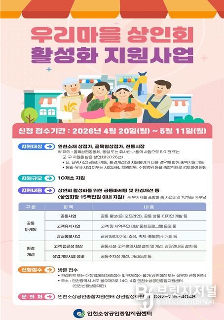 브릿지저널 김경미 기자 | 인천광역시는 지역 상권의 자생력 강화와 골목경제 활성화를 위해 ‘2026년 우리마을 상인회 활성화 지원사업’을 본격 추진한다고 밝혔다.