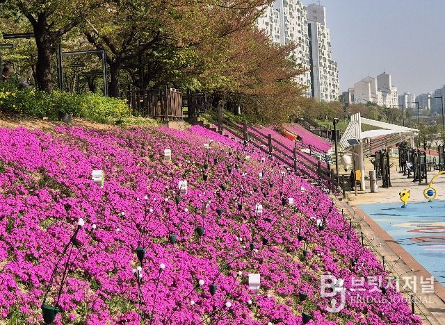 4월 중순부터 피기 시작한 꽃잔디는 4월 말에 만개할 예정이며, 5월까지 진분홍 경관을 연출할 예정이다.