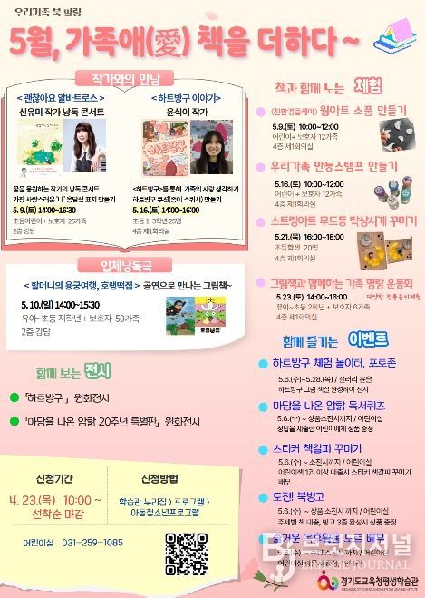 브릿지저널 김경미 기자 | 경기도교육청평생학습관이 가족 사랑 실천과 가족 간 유대감 증진을 위해 가족 독서체험 행사인 䃵월, 가족애(愛) 책을 더하다’를 운영한다.