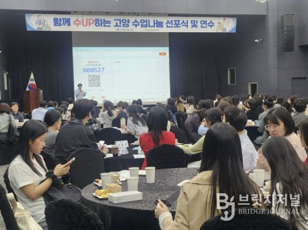 브릿지저널 김경미 기자 | 경기도고양교육지원청은 2026.4.22. 초등교원 230여명이 참석하여『2026 함께 수UP하는 고양 수업나눔』선포식을 개최하면서 고양 교육의 수업 성장에 대한 새로운 변화를 알렸다. 이번 행사는 학생들이 사유하며 주체적인 성장을 돕고 교사의 수업 전문성을 함께 높이기 위해 마련됐다. 특히 일회성 행사가 아닌 일상적인 수업 공개와 협력적 성찰이 이루어지는 학교 문화를 조성하겠다는 의지를 담았다. 수업나눔의 의미와 중요성을 공유하고 교원의 수업 역량을 높이기 위해 함께 의기투합하여 시작을 알렸다.