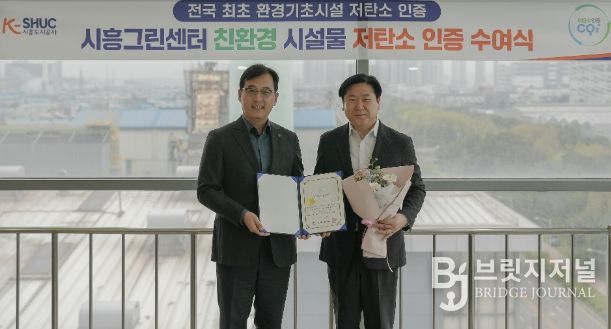 브릿지저널 김경미 기자 | 시흥도시공사는 지난 4월 21일 도시재생안전협회로부터 시흥그린센터 ‘친환경 시설물 저탄소’ 인증을 획득하고 인증식을 진행했다고 밝혔다. 이번 성과는 기관 단위가 아닌, 전국 환경기초시설 중 최초로 ‘시설물 단위 사업장’의 저탄소 인증을 받은 사례로, 환경 분야의 새로운 이정표를 세웠다는 평가를 받고 있다.