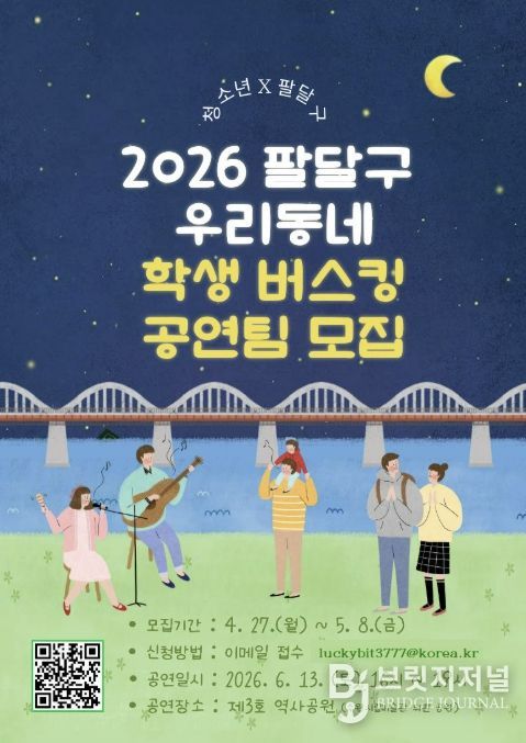 브릿지저널 김경미 기자 | 수원시 팔달구가 청소년들이 직접 주인공이 되어 공연에 참여하고 즐기는 ‘2026 팔달구 우리동네 학생 버스킹’의 공연팀을 모집한다고 밝혔다.