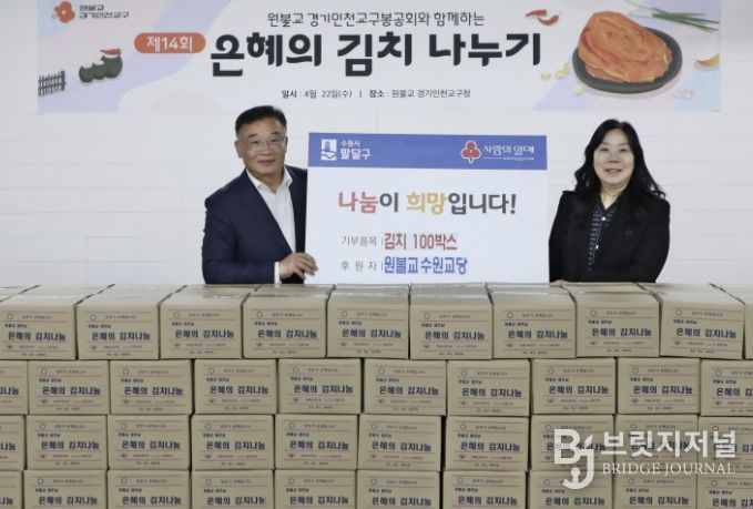 브릿지저널 김경미 기자 | 수원시 팔달구은 원불교 수원교당으로부터 지난 22일, 김치 100박스를 기부받았다고 밝혔다.