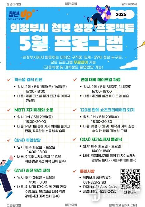 브릿지저널 김경미 기자 | 의정부시는 미취업 청년의 취업 준비 역량 강화를 위해 ‘청년성장프로젝트’ 5월 프로그램을 운영한다.