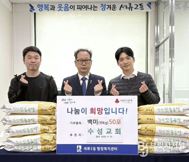 세류2동 변영호 동장은 “매년 잊지 않고 사랑 나눔을 실천해 주신 수성교회에 감사드리며, 앞으로도 민·관 협력을 통해 행복과 웃음이 피어나는 정겨운 세류2동을 만들어가겠다”고 말했다.