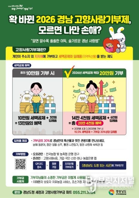브릿지저널 김경미 기자 | 경상남도는 4월 24일부터 26일까지 김해종합운동장에서 개최되는 ‘2026년 전국생활체육대축전’ 기간 동안 김해시·거제시·함양군과 함께 고향사랑기부제 합동 홍보부스를 운영한다.