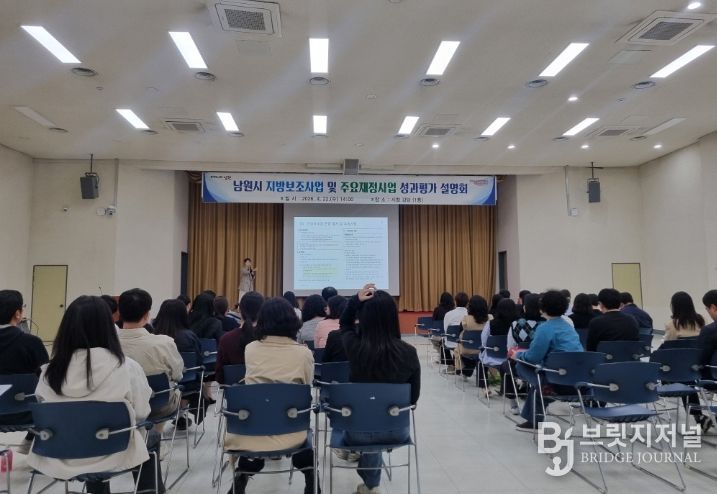 브릿지저널 윤나영 기자 | 남원시는 지난 22일 시청 강당에서 보조사업의 투명성을 높이고 효율적인 재정 운영을 도모하기 위해 관련 부서 보조사업 담당자와 민간보조사업자 등 100여 명을 대상으로 2025회계연도 지방보조사업 성과평가 설명회를 개최했다.
