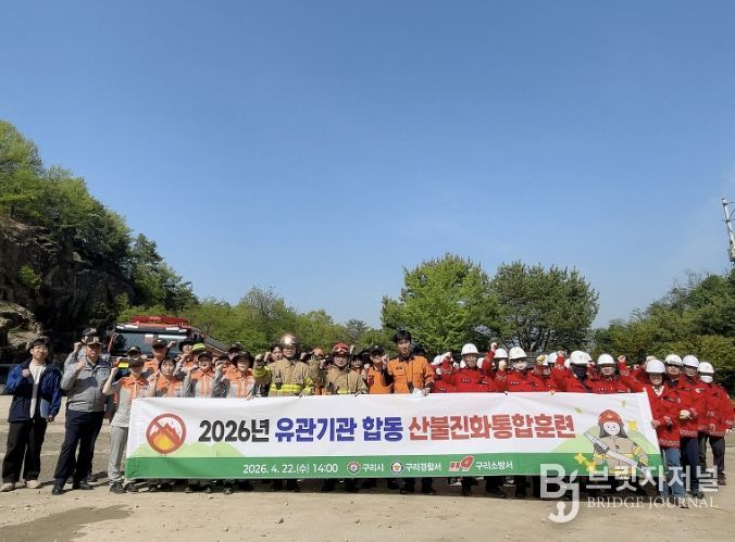 브릿지저널 김경미 기자 | 구리시는 산불 발생 시 신속하고 체계적인 대응능력 강화를 위해 지난 4월 22일 고구려대장간마을 주차장에서 ‘2026년 유관기관 합동 산불 진화 통합훈련’을 실시했다고 밝혔다.
