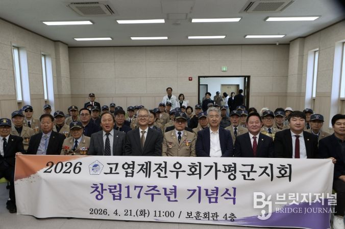 브릿지저널 김경미 기자 | 가평군은 지난 21일 가평군보훈회관 회의실에서 ‘대한민국고엽제전우회 가평군지회 창립 제17주년 기념식’을 개최했다고 밝혔다.