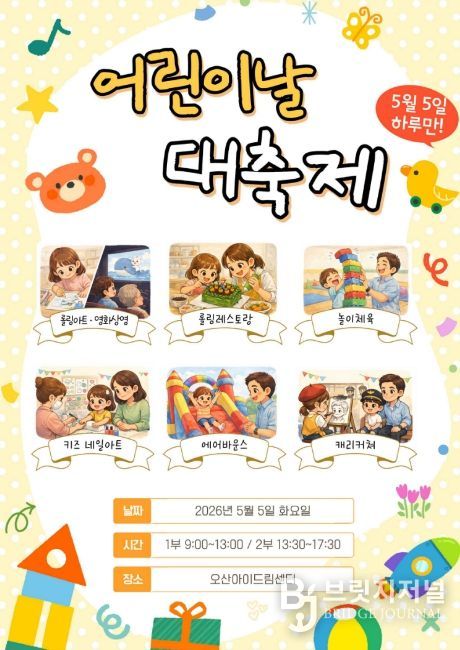 브릿지저널 김경미 기자 | 오산시가 운영하는 오산아이드림센터가 어린이날을 맞아 온 가족이 함께 즐길 수 있는 특별 체험행사를 마련한다.