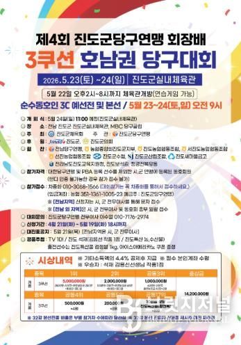 먼저 ‘2026 진도아리랑배 전국당구대회’는 5월 12일부터 5월 17일까지 6일간 진도군 실내체육관에서 개최된다.