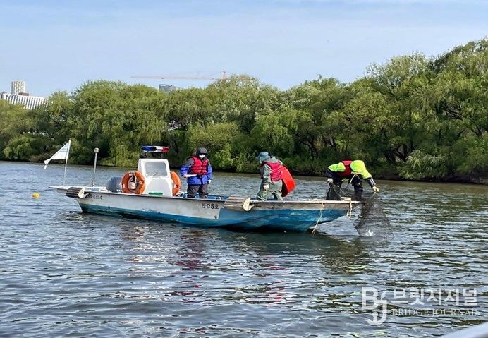 브릿지저널 김경미 기자 | 서울시는 23일 오전, 서강대교 하부 밤섬 인근에서 한강 어종조사를 실시했다. 이는 매년 2회씩 정기적으로 한강 본류 6개 지역 8개 지점에서 이뤄지는 조사다.