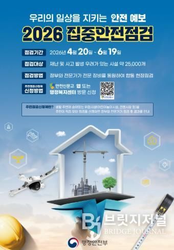 브릿지저널 김경미 기자 | 고성군은 지역 내 각종 안전사고 예방을 위해 지난 4월 20일부터 오는 6월 19일까지 ‘2026년 집중안전점검’을 실시하고 있다.