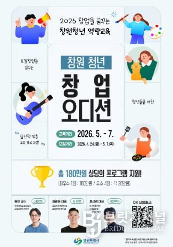 브릿지저널 김경미 기자 | 창원특례시는 관내 청년들의 성공적인 로컬 창업을 지원하기 위해 ‘창원 청년 창업 오디션’ 참가자 20명을 오는 4월 24일부터 5월 7일까지 모집한다고 밝혔다.