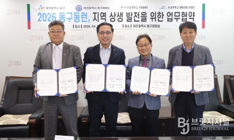 브릿지저널 정보영 기자 | 대전 동구는 23일 구청장 접견실에서 우송대학교‧동구 체육회와 ‘동구동런(Run)’ 운영 활성화를 위한 업무협약을 체결했다고 밝혔다.