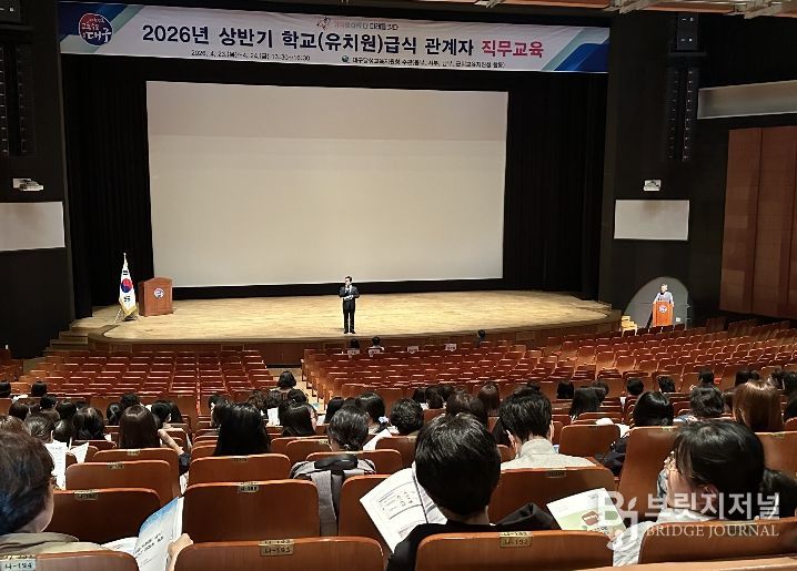 브릿지저널 김진석 기자 | 대구달성교육지원청은 4월 23일부터 24일까지 이틀간 대구학생문화센터 대공연장에서 대구지역 전체 영양(교)사·조리사·학교급식소위원(학부모) 등 1,902명을 대상으로 ‘학교급식 관계자 직무연수’를 개최한다.