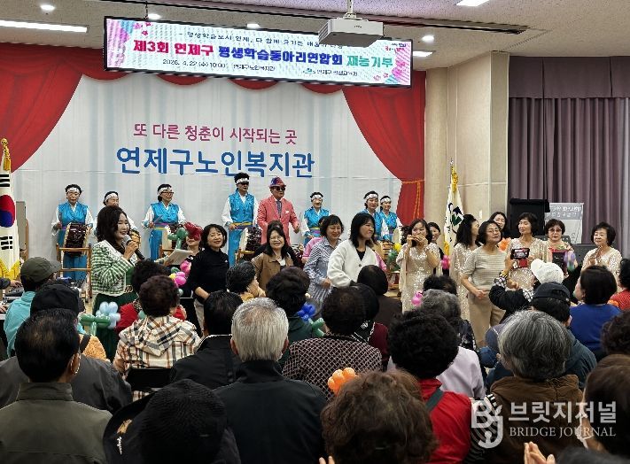 브릿지저널 윤나영 기자 | 연제구는 지난 4월 22일 연제구노인복지관에서 지역 어르신 70여 명이 참석한 가운데, 동아리연합회(회장 이경희) 주관으로 동아리 공연 및 학습체험 재능기부 행사를 개최했다.