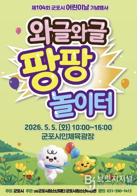 브릿지저널 김경미 기자 | 군포시는 제104회 어린이날을 맞아 오는 5월 5일 오전 10시부터 오후 4시까지 군포시민체육광장에서 ‘와글와글 팡팡 놀이터’를 주제로 어린이날 기념행사를 개최한다.