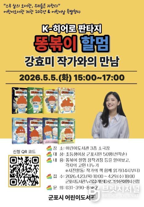 브릿지저널 김경미 기자 | 군포시어린이도서관은 오는 5월 4일 개관 20주년을 맞아 지역주민과 함께 소통하고 성장해 온 시간을 기념하기 위해 다채로운 행사를 개최한다고 밝혔다.