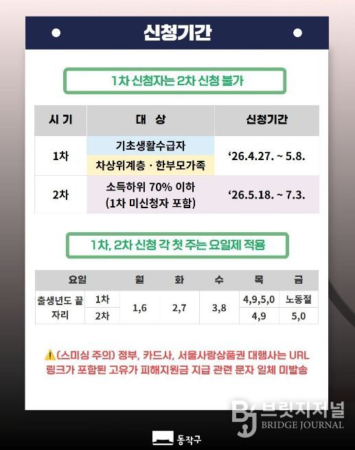 브릿지저널 김경미 기자 | 동작구가 고유가·고환율·고물가로 인한 주민들의 경제적 부담을 완화하기 위해 고유가 피해지원금, 에너지 바우처 등 민생 안정 대책을 추진한다고 밝혔다.