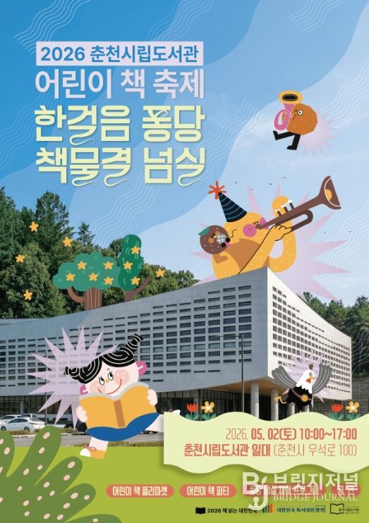 브릿지저널 윤나영 기자 | 춘천시립도서관이 오는 5월 2일 오전 10시부터 오후 5시까지 도서관 내·외부 일원에서 2026 어린이 책축제 ‘한 걸음 퐁당, 책 물결 넘실’을 개최한다.