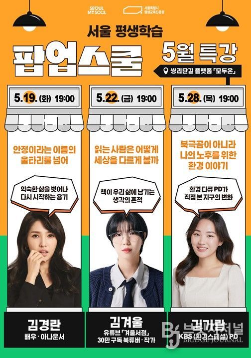 브릿지저널 김경미 기자 | 서울특별시평생교육진흥원이 지난 4월 도봉구 쌍문역 인근에 개관한 서울시 첫 역세권 평생학습 거점 ‘서울 평생학습 팝업스쿨’을 확대 운영한다. 시범운영 한 달간 500여 명이 참여했으며, 5월에는 정규강좌, 명사특강, 러닝숍 등 3개 영역에서 총 13개 과정을 편성하고, 650명의 시민 참여를 목표로 한다.
