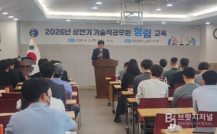 브릿지저널 정보영 기자 | 대전시교육청은 4월 23일 시교육청 회의실에서 본청 및 동·서부교육지원청 기술직 공무원을 대상으로 ‘2026년 상반기 기술직 공무원 청렴 및 시설예산 교육’을 실시했다고 밝혔다.