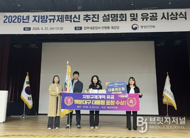 브릿지저널 윤나영 기자 | 해운대구는 행정안전부 주관‘2025년 지방규제혁신 추진 성과평가’에서 우수한 성과를 인정받아 지난 22일 지방규제개혁 유공 대통령 표창을 수상했다.