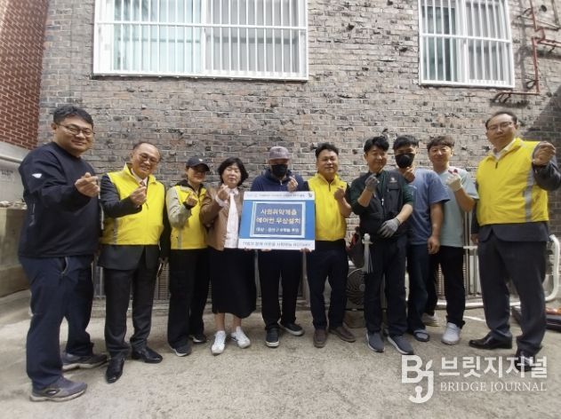 브릿지저널 김경미 기자 | 지난 23일 수원시 권선구 호매실동 지역사회보장협의체는 업무협약을 맺은 수원남부로타리 클럽과 주거환경개선 특화사업의 일환으로, 반지하 빌라에 거주하는 취약계층 어르신 댁에 에어컨을 설치했다.