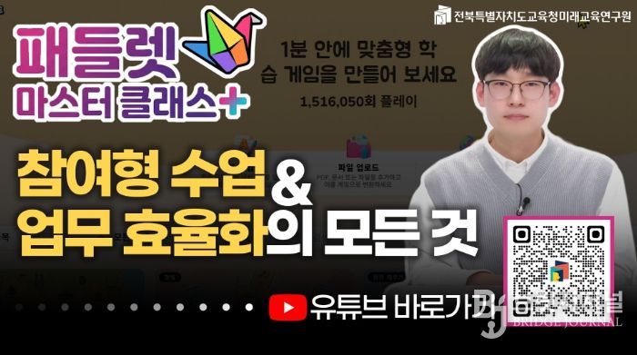 브릿지저널 윤나영 기자 | 전북특별자치도교육청미래교육연구원이 교원의 인공지능(AI)·디지털 수업역량 강화와 수업 연구 전문성 신장을 위해 맞춤형 동영상 강의 자료를 제작, 보급한다.