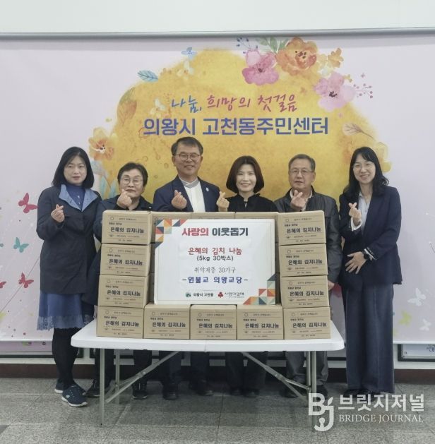 브릿지저널 김경미 기자 | 의왕시 고천동 소재 원불교 의왕교당이 4월 22일, 고천동주민센터에 김치(5kg) 30박스를 기탁했다.