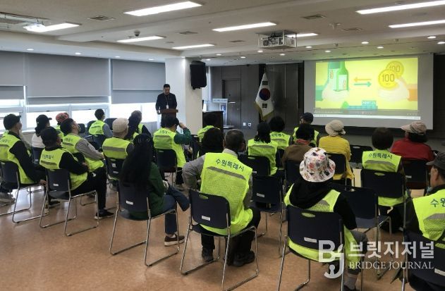 브릿지저널 김경미 기자 | 수원시 장안구는 지난 4월 23일, 장안구청 대회의실에서 자원관리사들을 대상으로 안전 및 직무 교육을 실시했다.