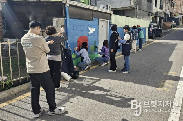 브릿지저널 김경미 기자 | 지난 23일, 수원시 장안구 율천동의 인적 드문 골목길이 마을의 온기를 품은 거대한 캔버스로 탈바꿈했다. 단순한 환경 미화를 넘어, 주민들이 직접 마을의 이야기를 담아냈다는 점에서 그 의미가 남다르다.
